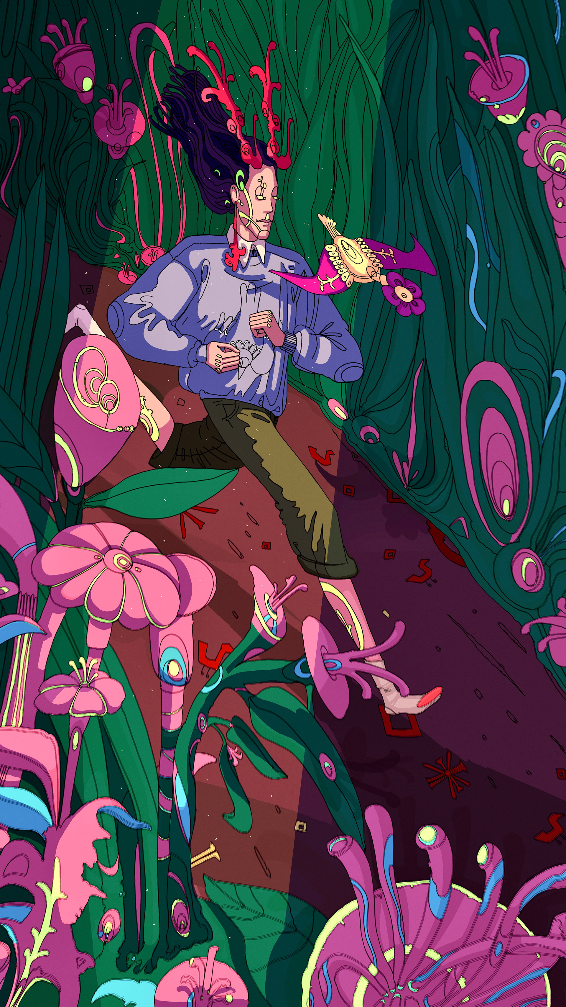 A figure in motion, yet deeply still — letting go, being taken, and trusting where the unseen forces might lead.